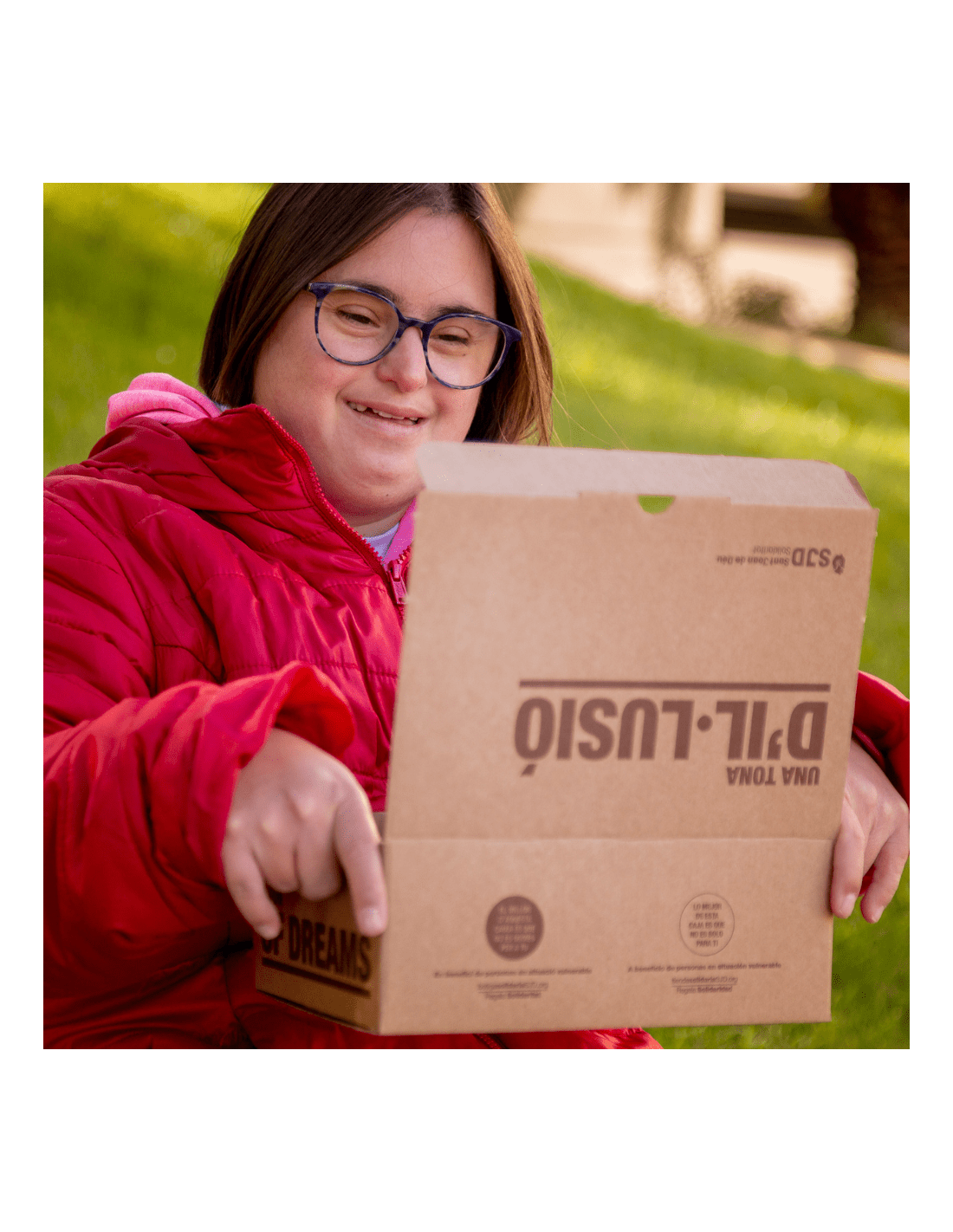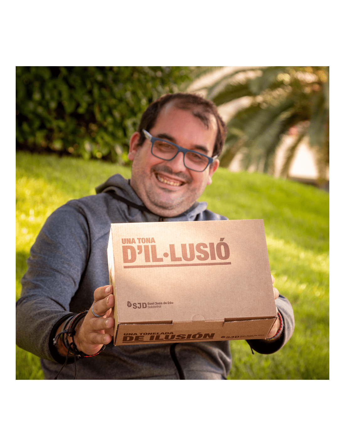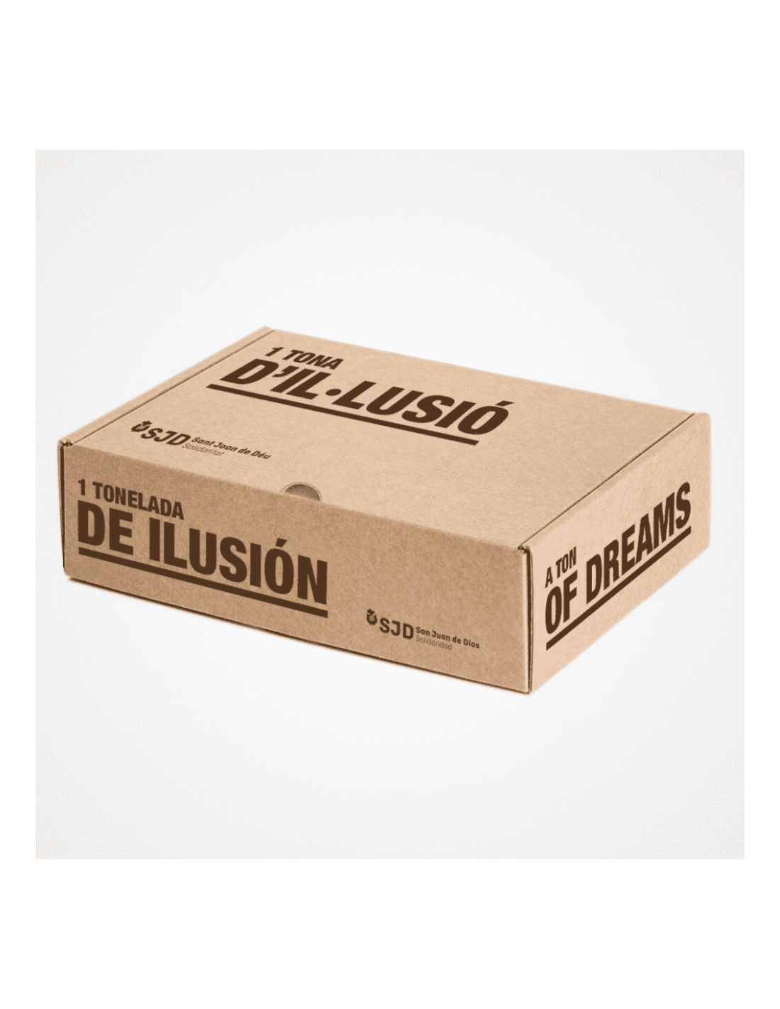 Aquesta capsa solidària de cartró amb el missatge 1 Tona d'il·lusió pensada per que la omplis de coses visible o invisibles i sorprenguis els que més estimes, i a la vegada ajudar a fer realitat els diferents projectes solidaris de Sant Joan de Déu.