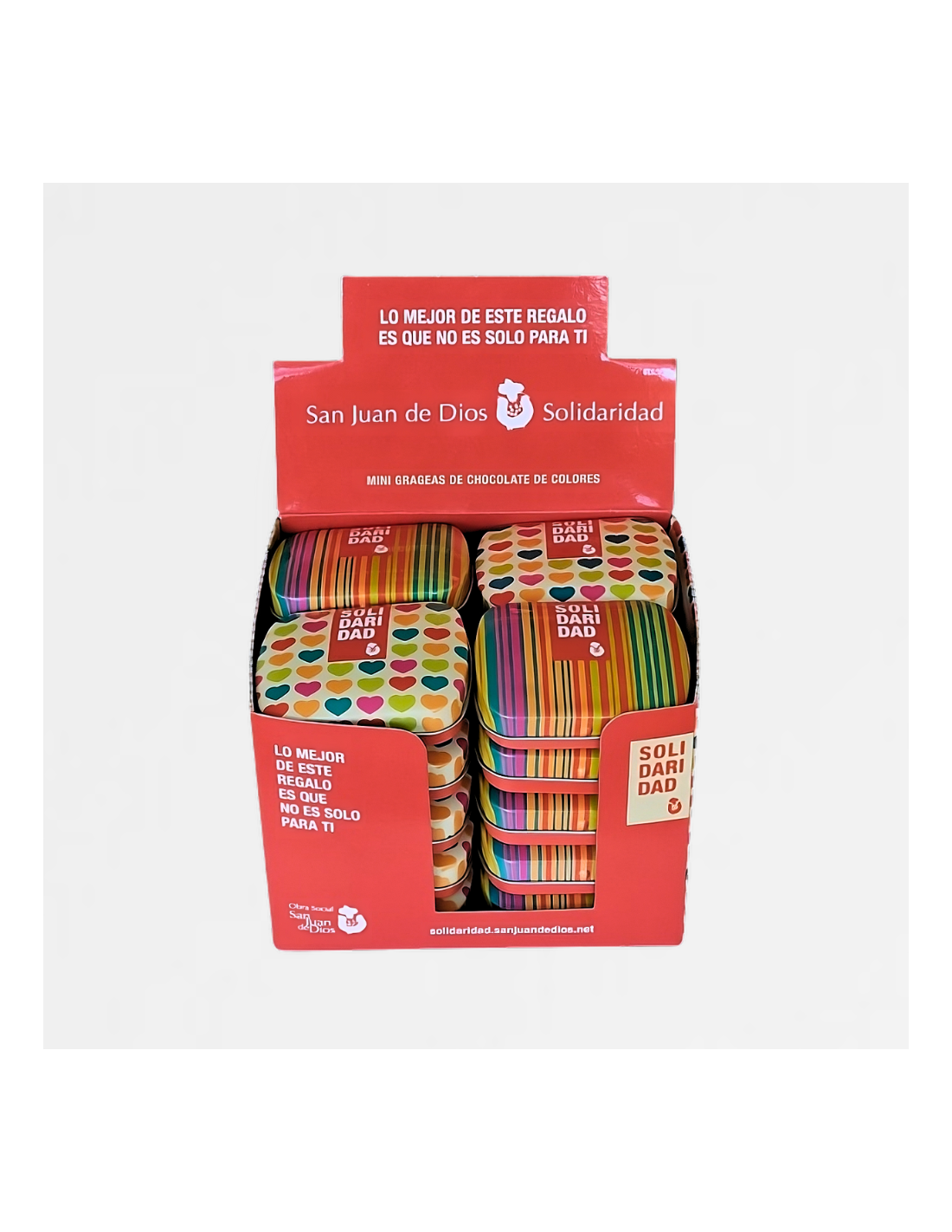 Sant Joan de Déu et convida a regalar solidaritat comprant capsetes metàl·liques de colors amb el lema 'SOLIDARIDAD' plenes de petites xocolatines. Amb aquesta compra contribueixes a millorar la qualitat de vida de les persones que es troben en situació vulnerable.