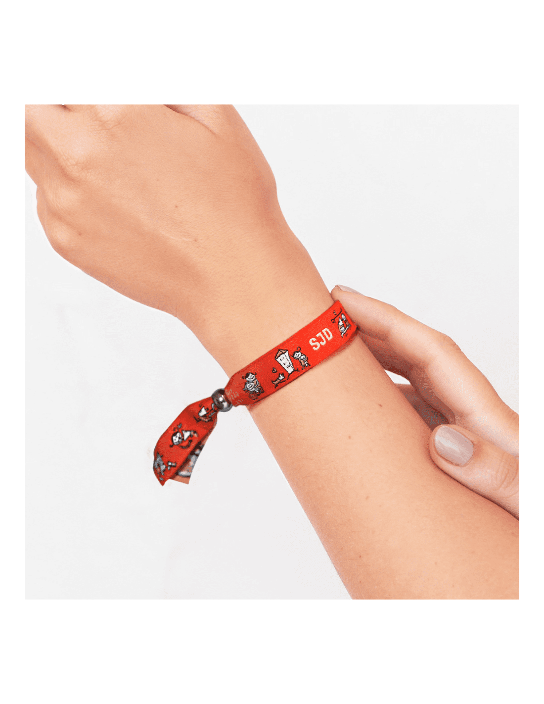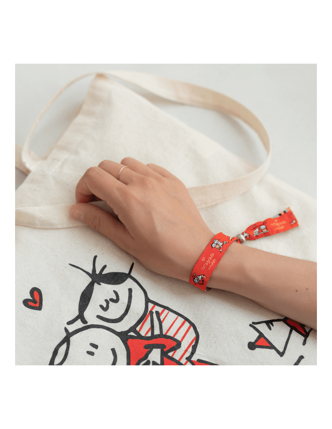 Pack de bossa de tela y polsera brodada amb abalori cromat.