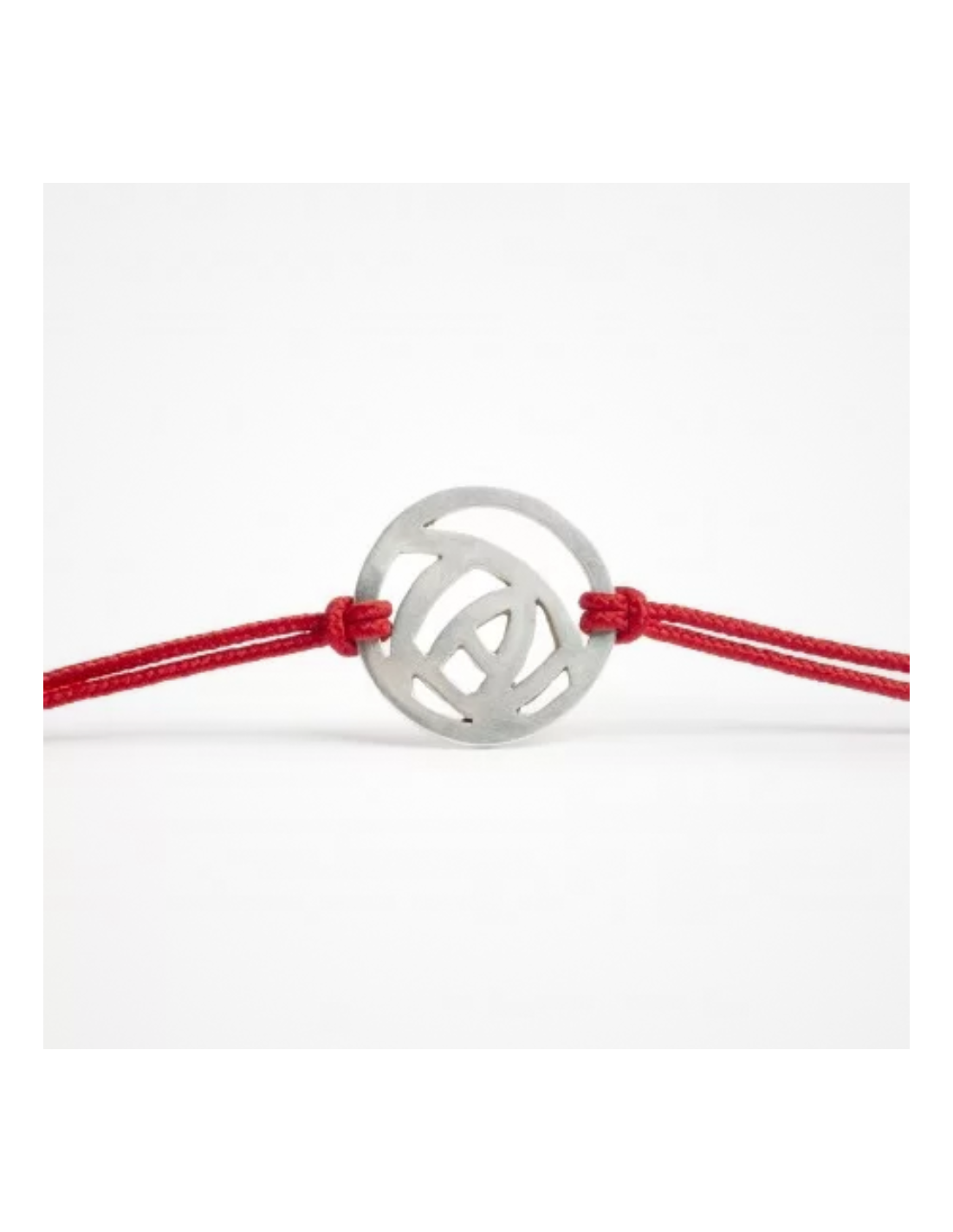 Polsera solidària de plata amb forma de rosa feta a mà de manera sostenible.