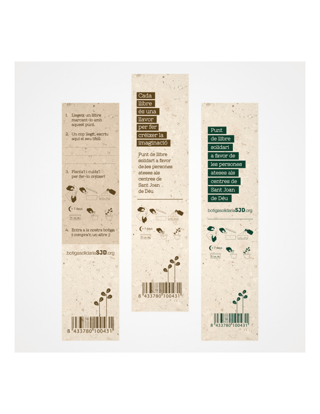 Aquests punts de llibre et permetran donar-li un final feliç a cada història. Una vegada acabat el llibre, planta el punt que has utilitzat i fes créixer la solidaritat.