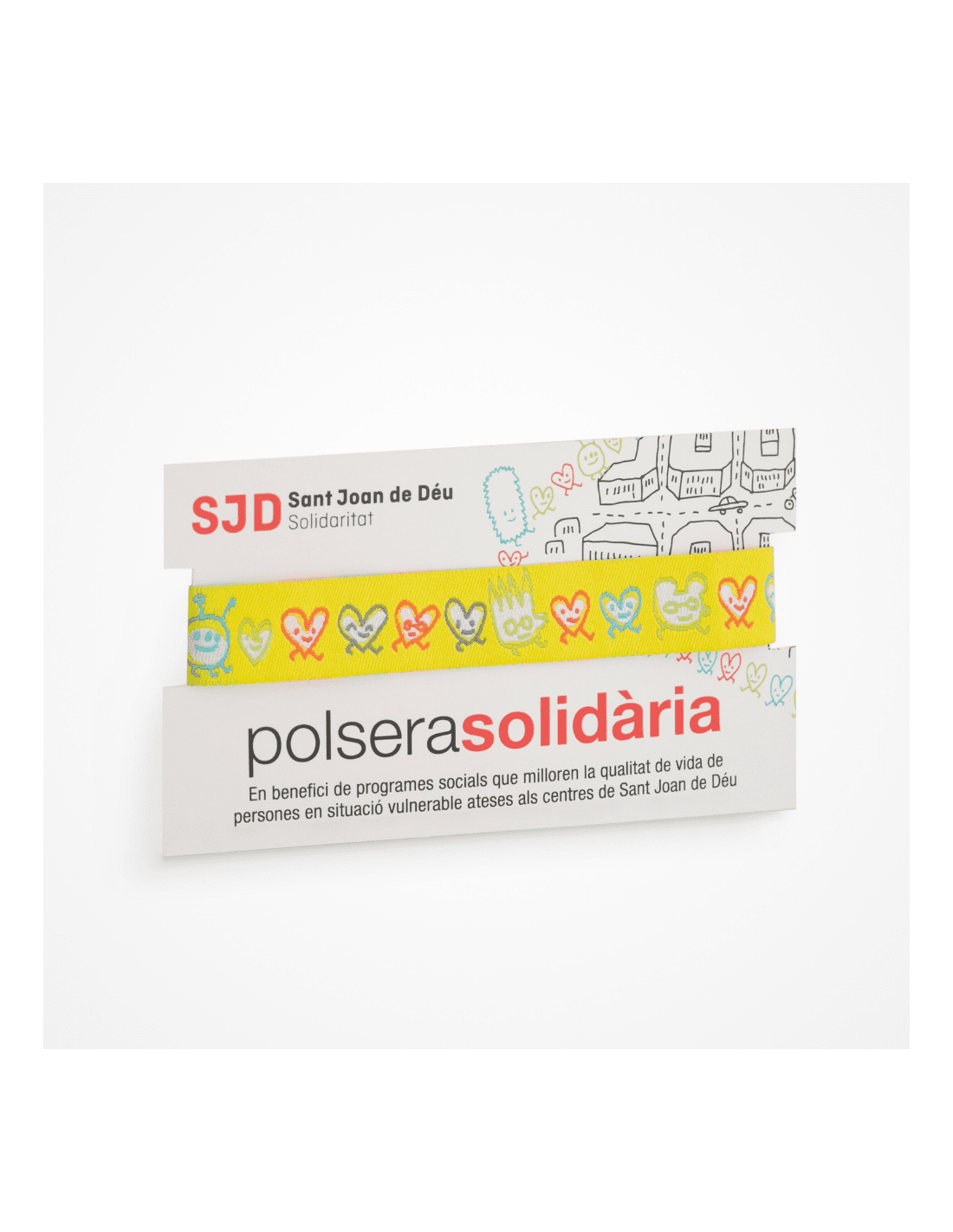 La polsera està disponible en color verd i fa 30 cm per a que puguis lligar-te al canell una infinitat de cors solidaris.
