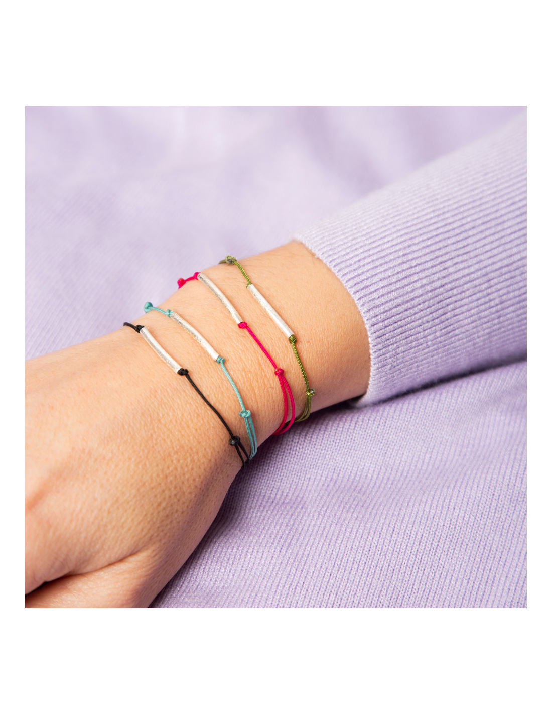 Aquesta petita joia de plata és el complement ideal per regalar o regalar-te. Elaborada amb plata de llei i fil de cotó, aquesta polsera ha sigut dissenyada en exclusivitat per a Sant Joan de Déu pel taller artesà Tass Joies, una empresa joiera del territori formada per dones.