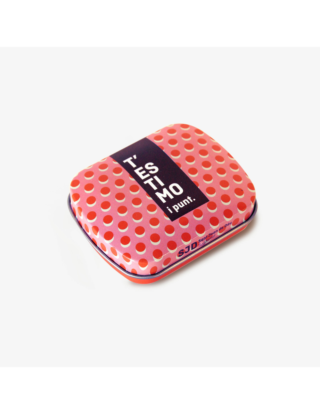 Aquestes capsetes metàl·liques plenes de caramels tenen doble sentit: dir t'estimo i ajudar als programes de l'Obra Social Sant Joan de Déu.
