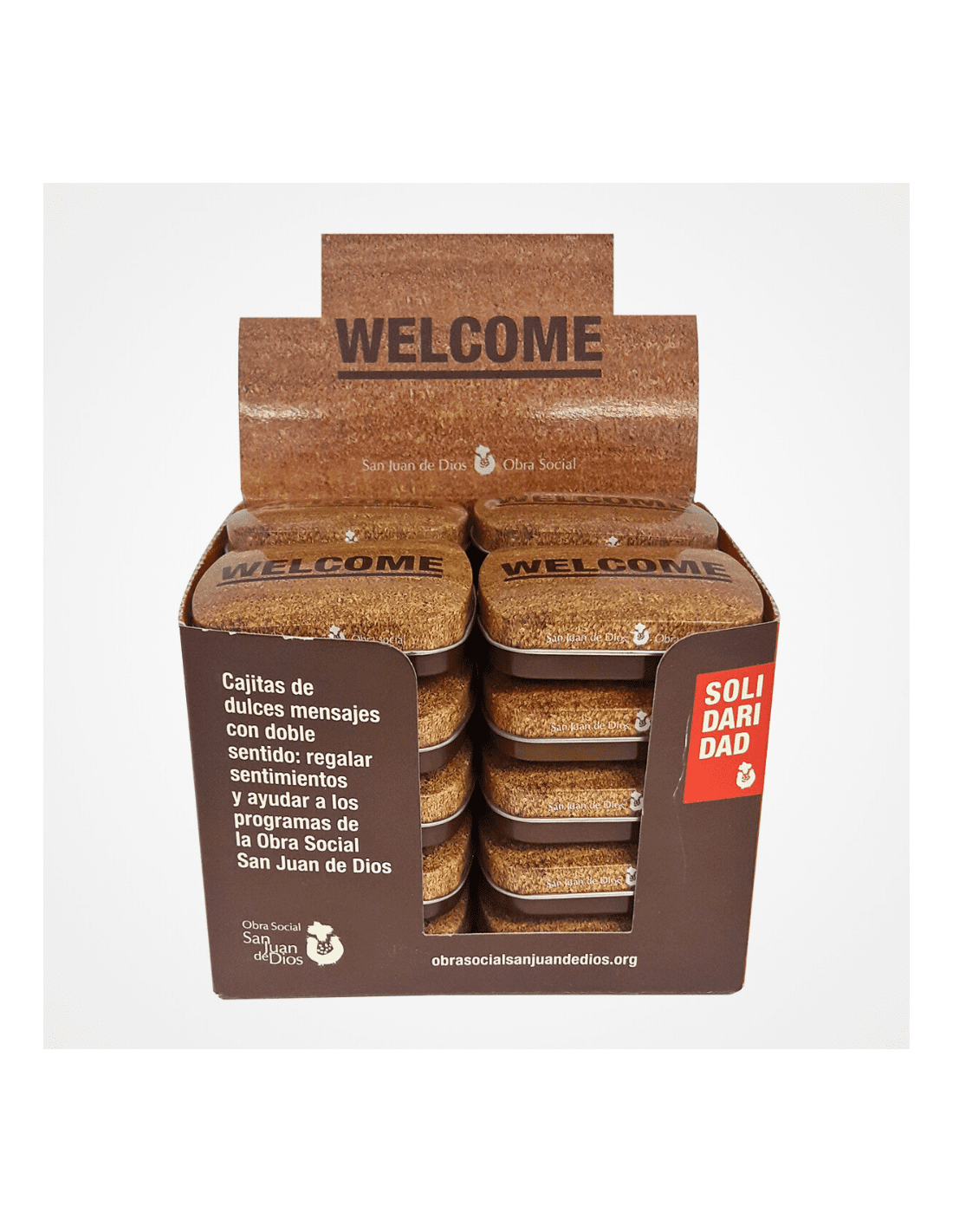 Les capsetes metàl·liques, plenes de caramels de menta, tenen doble sentit: donar la benvinguda i ajudar als programes de l'Obra Social Sant Joan de Déu. L'HOSPITALITAT és el nostre valor central.