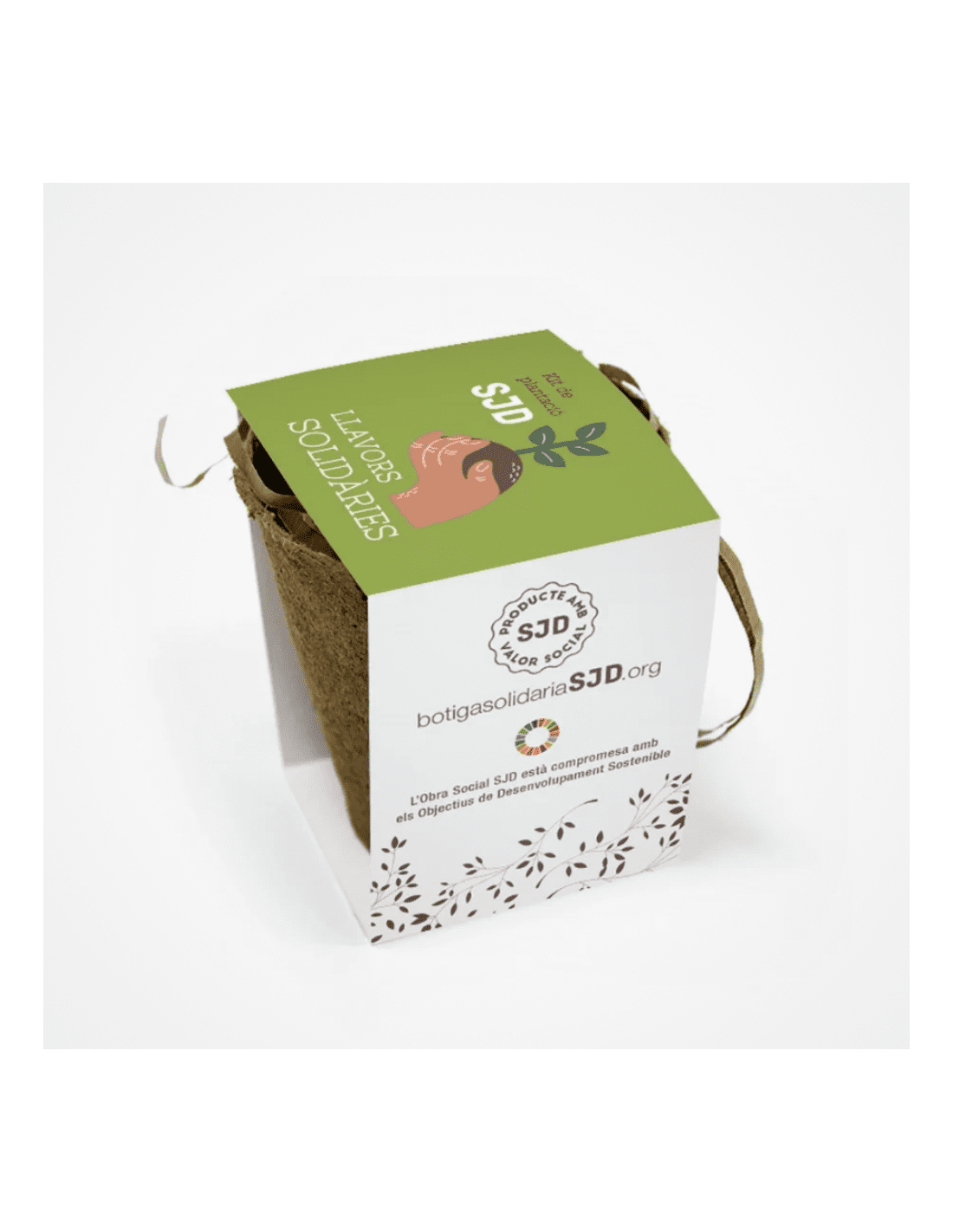 Kit de cultiu amb tot el que necessites per fer créixer la solidaritat: el test, les llavors i la terra. Només caldrà que la reguis i li donis molt d'amor per fer créixer aquestes llavors de solidaritat.