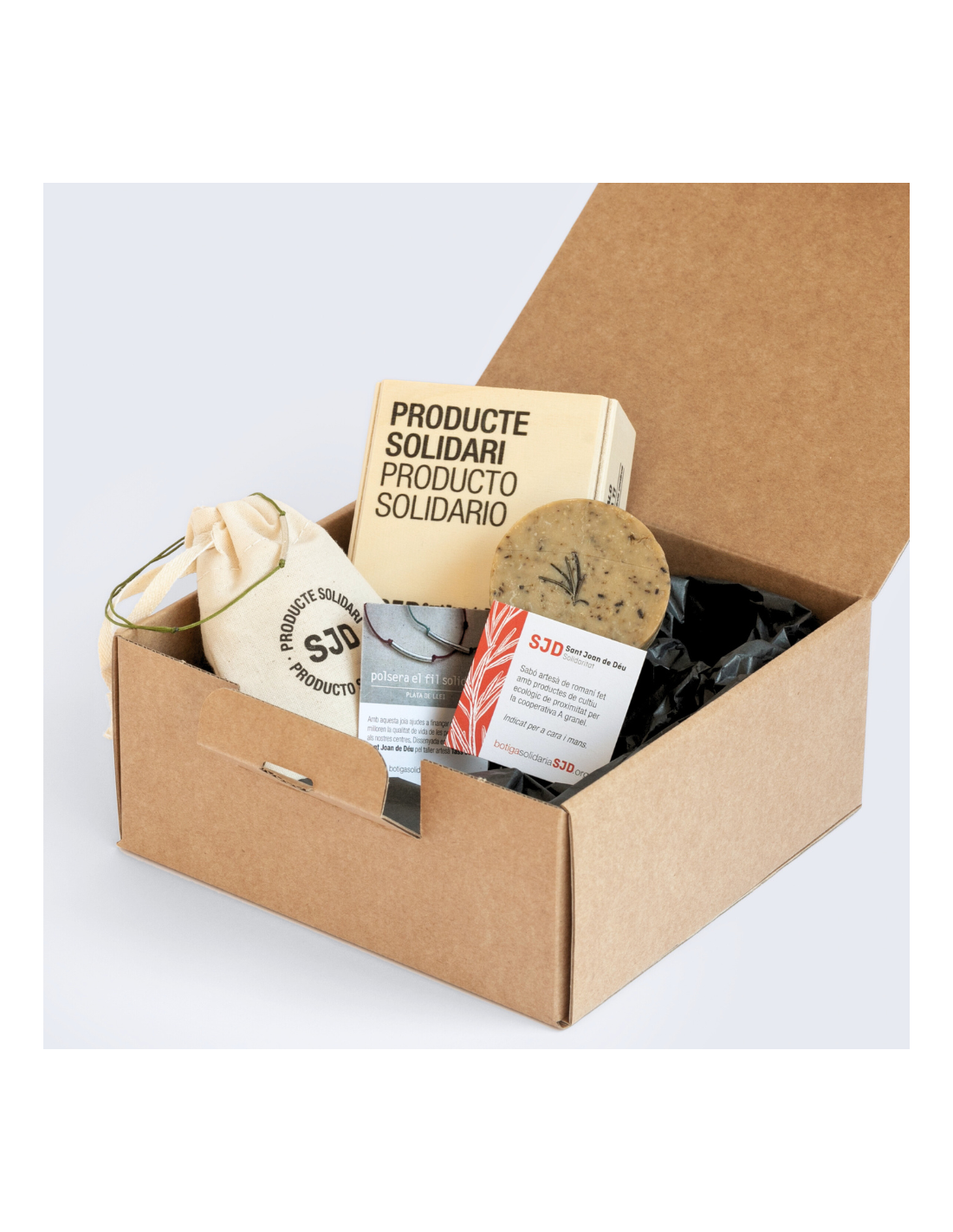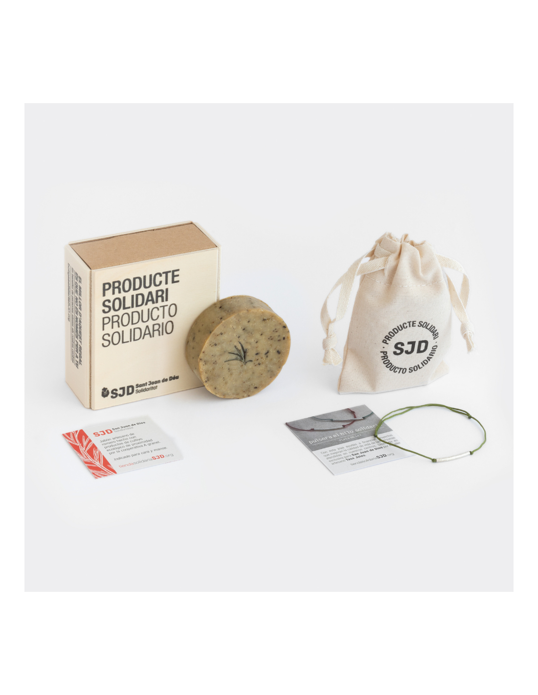 El sabó de romaní, fet amb productes de cultiu ecològic, i la polsera de plata Fil Solidari en color Caqui, produïda artesanalment al cor de Barcelona, són la combinació perfecta. ¡Presentat en un packaging 100% sense plàstic que garanteix una experiència regal de 10!