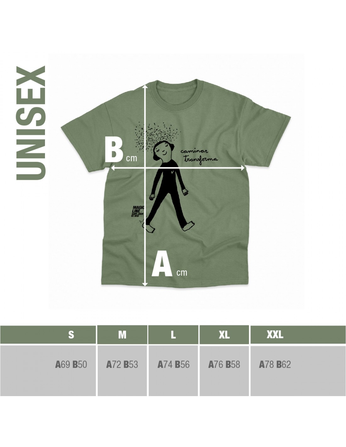 Aquesta samarreta és de producció responsable, ecològica i solidària. Ho té tot i més! Sota el lema "Caminar transforma", la samarreta de la Magic Line 2020 ha estat dissenyada per la il·lustradora Eva Armisén.