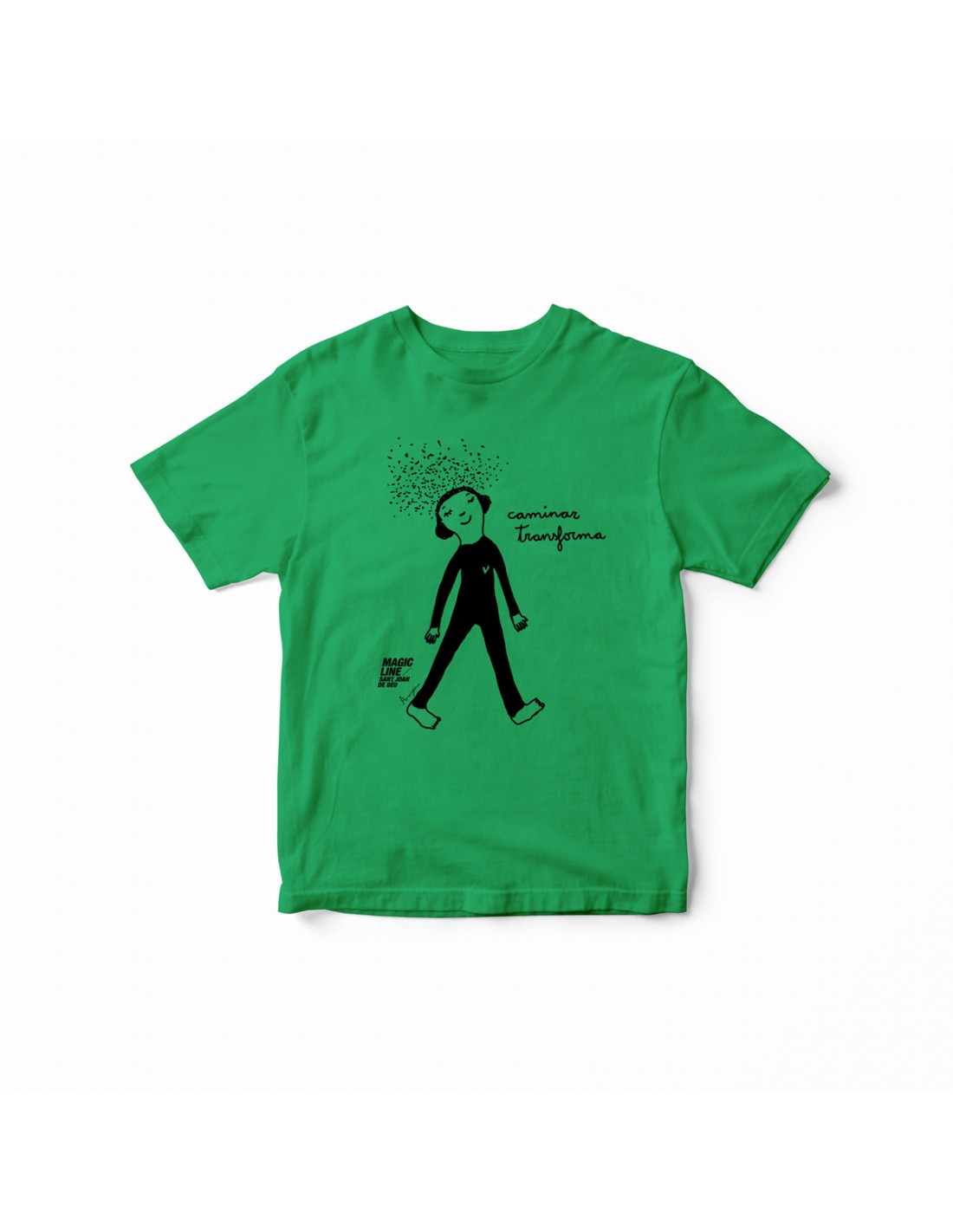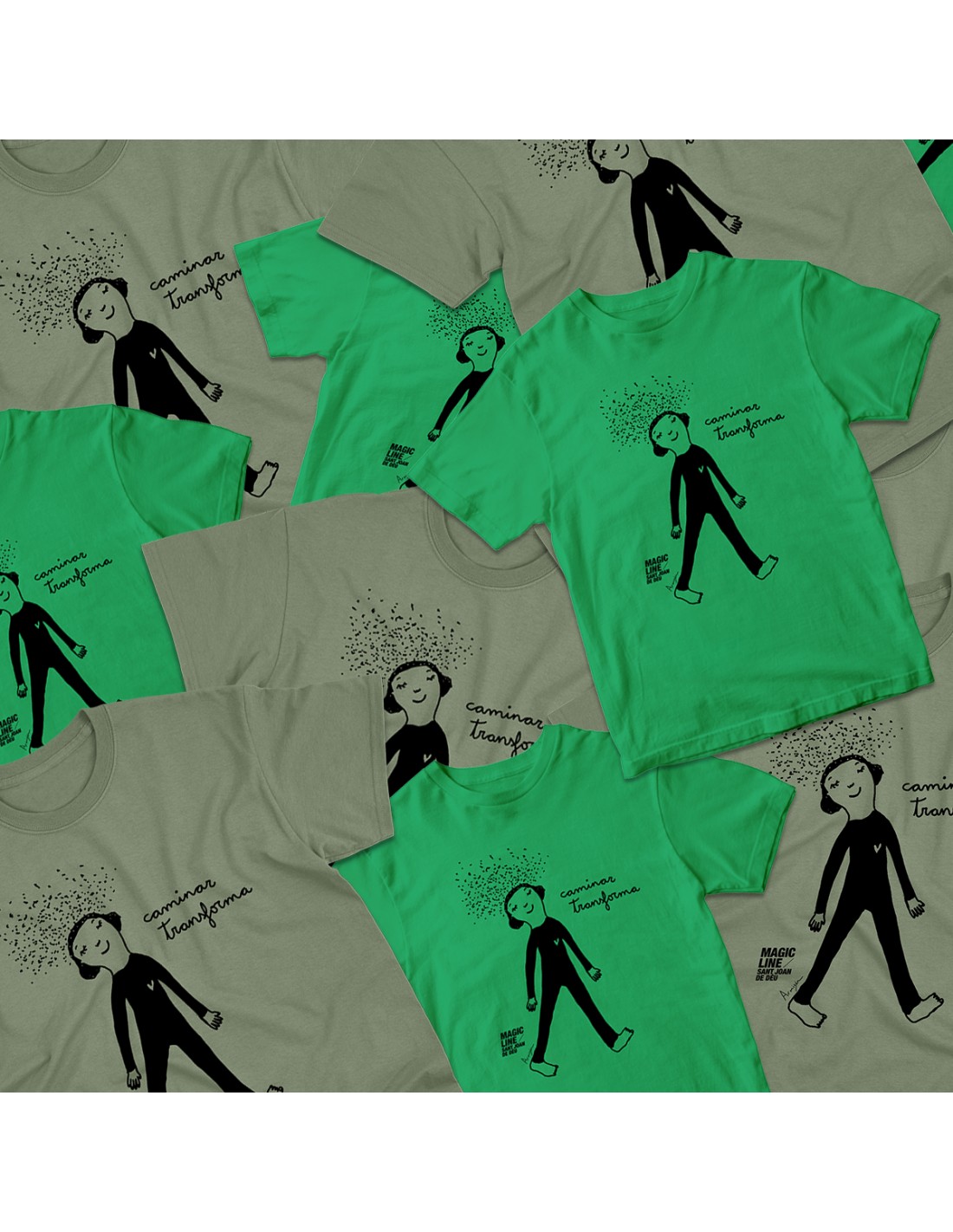 Esta camiseta es de producción responsable, ecológica y solidaria. ¡Lo tiene todo y más! Bajo el lema "Caminar transforma", la camiseta de la Magic Line ha sido diseñada por la ilustradora Eva Armisén.