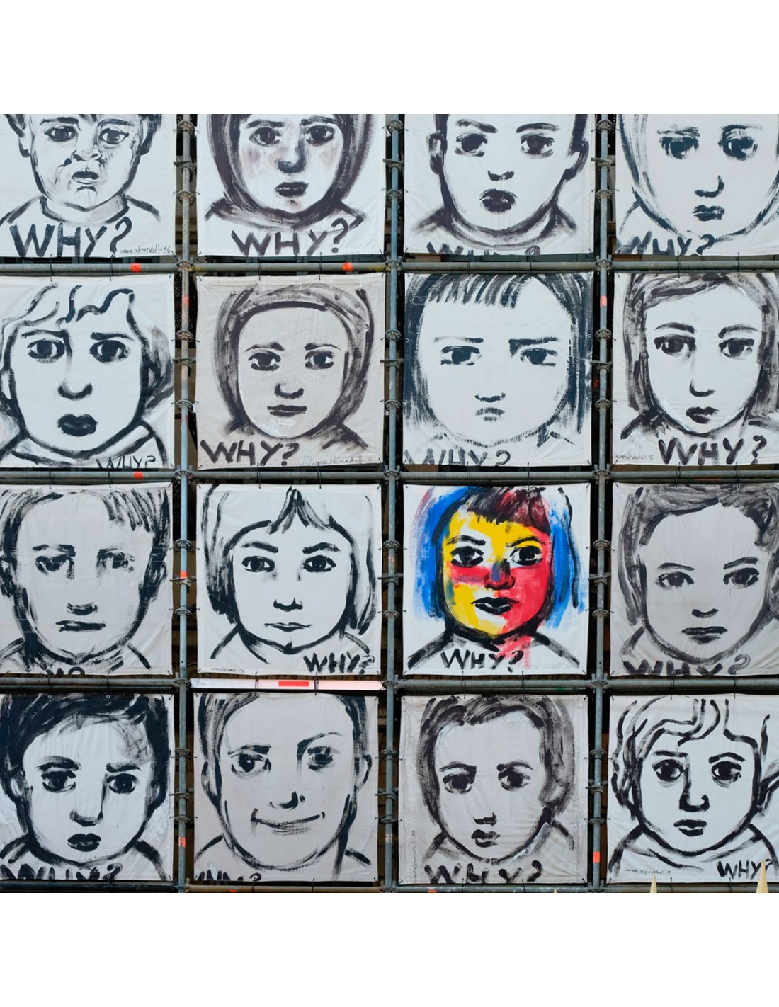 Carme Solé Vendrell ha convertido en libro su campaña "WHY?", un proyecto que da voz a los niños y niñas que no la tienen y denuncia la vulneración de los derechos de los más pequeños. Junto con Jaume Escala, pintaron decenas de rostros de niños y niñas reales en telas blancas actualmente expuestas por las calles de Barcelona.