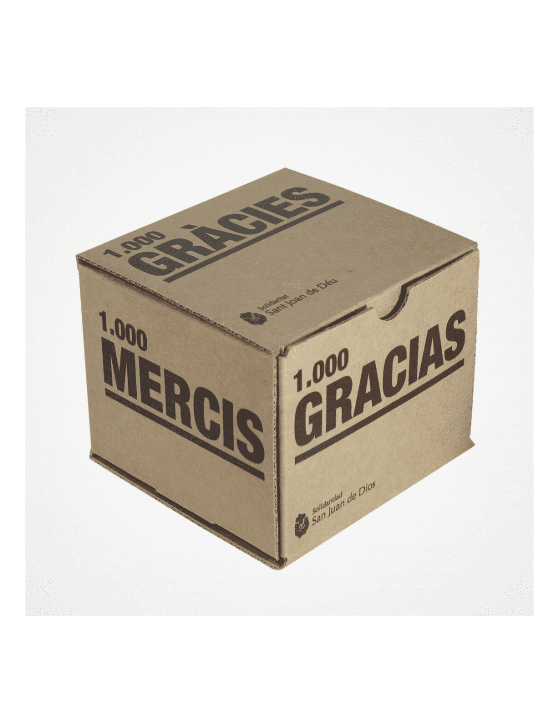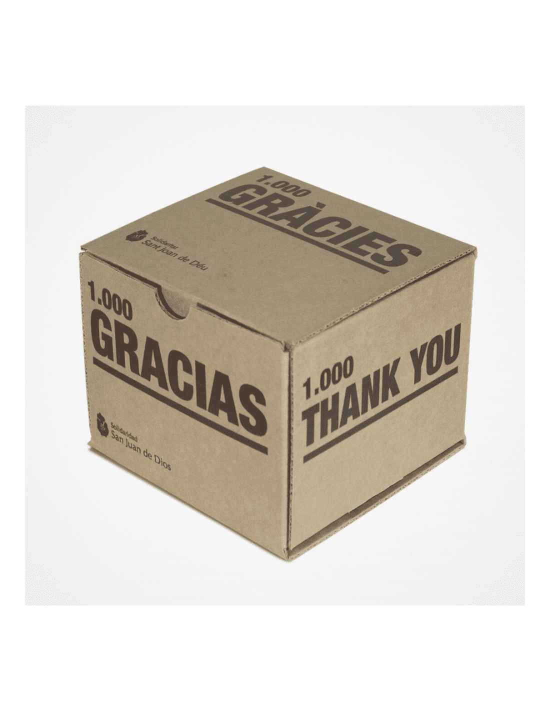 La cajita solidaria de cartón 1.000 GRACIAS está pensada para aquellas personas que quieren expresar su estima y afecto hacia los demás, y al mismo tiempo, ayudar a hacer realidad los proyectos de San Juan de Dios.