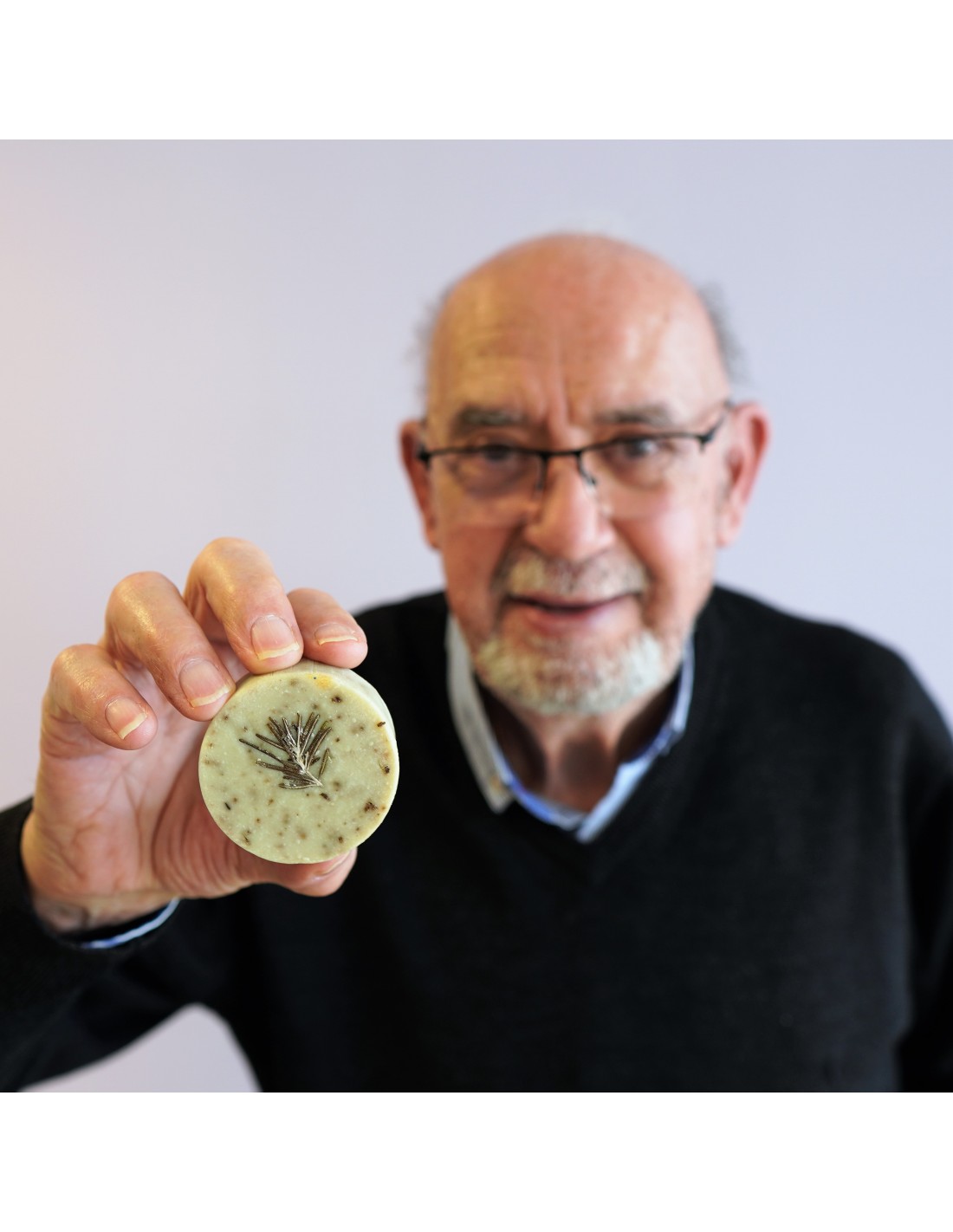 Este jabón de romero está elaborado de forma artesana y sostenible por la cooperativa A granel. Es indicado para el lavado de cara y manos y garantiza la higiene como medida de seguridad.