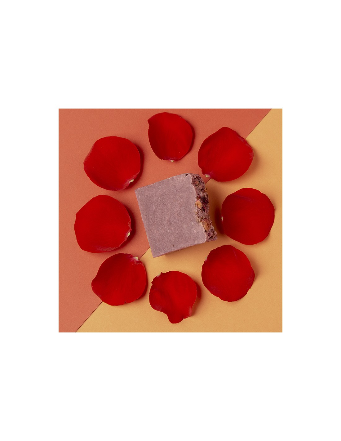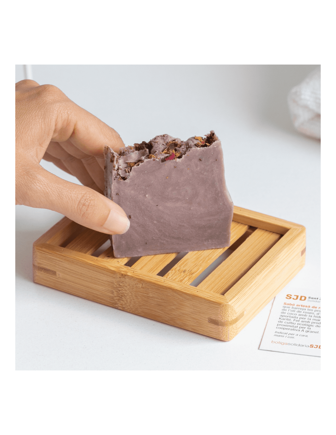 Este jabón de rosas está elaborado de forma artesana y sostenible por la cooperativa A Granel. Es indicado para el lavado de cara, cuerpo y manos y garantiza la higiene como medida de seguridad.